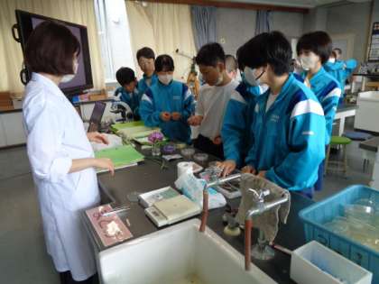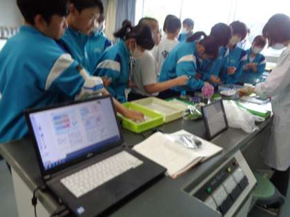 2年生の理科の授業は、細胞の観察。さまざまなものを試料にして、細胞を観察していきます。