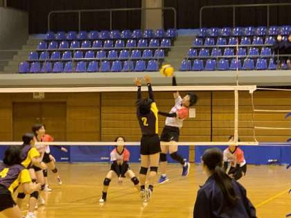 明日の決勝リーグに進んだバレーボール部。明日も頑張ってください。