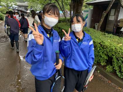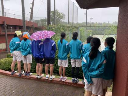 雨が降り続いているテニスコート。個人戦には2ペアが出場します。頑張れ守中。