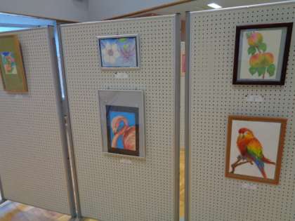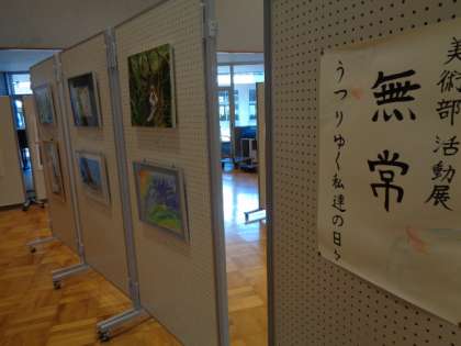 コミュニティーホールの一角に、美術部の作品展が設営されました。皆力作ばかりです。