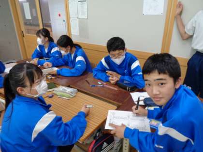 3年生の学活の授業。班毎に役割分担を確認していました。