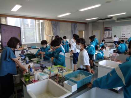 2年生の理科の授業は微生物の観察。皆意欲的に活動していました。