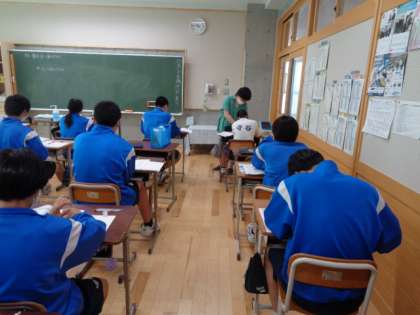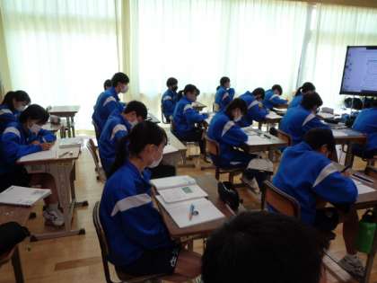 3年生の数学の授業は、因数分解。練習問題に意欲的に取り組んでいました。