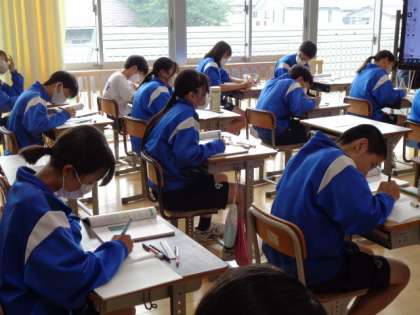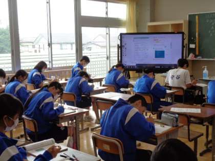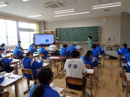 3年生の数学の授業は、二次方程式の解の公式について。皆真剣に先生の解説を聞いていました。