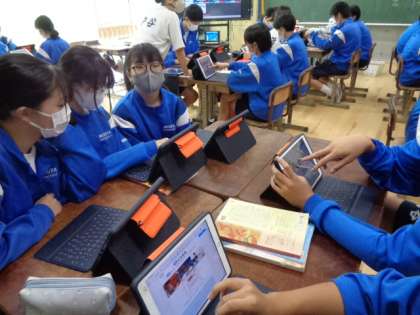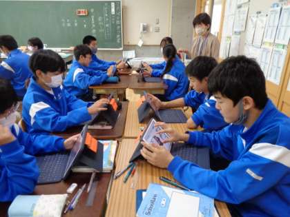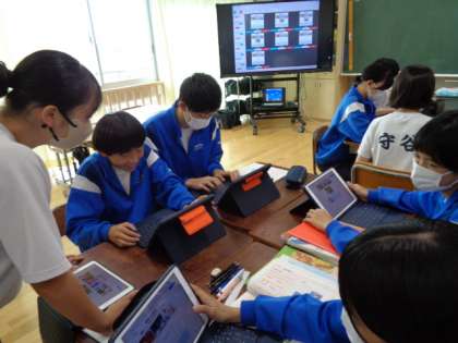3年生の国語の授業は、四字熟語について。タブレットを使って活動していました。