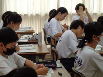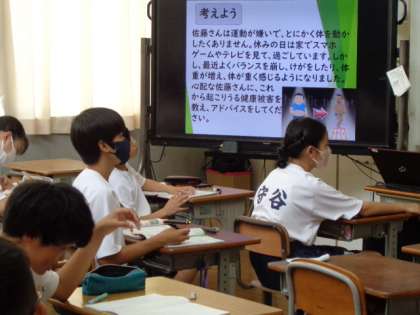 1年生の保健体育の授業は、健康障害について。ある中学生の例を挙げ、その人が気を付けなければいけないことを考えていました。
