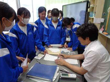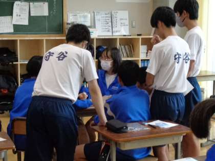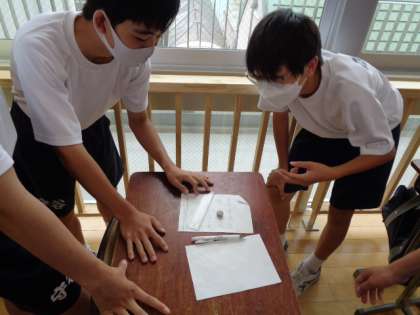 3年生の理科の授業は、食物ピラミッドについて。バランスが崩れるとどうなるかについて意見交換していました。