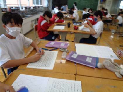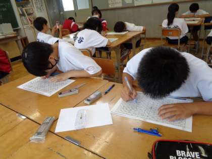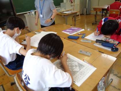 1年生の美術の授業は、色を組み合わせたデザインについて。皆意欲的に活動していました。