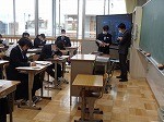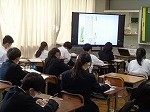 1年生の数学の授業は、等式の性質について。電子黒板での画像を基にした先生の説明を真剣に聞いていました。