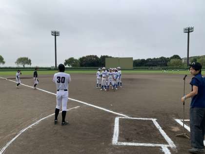 野球部の開会式前の様子です。頑張ってください。