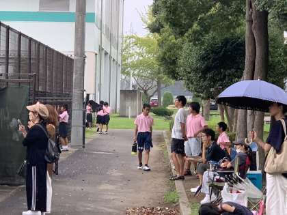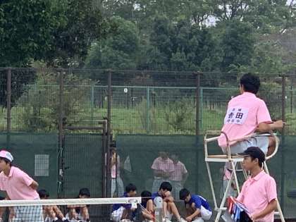団体戦を行っています。御所ケ丘中に勝利した後の様子です。