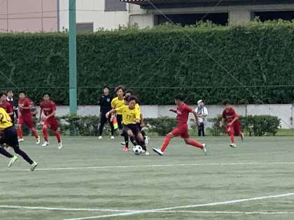 前半のハーフ、1対1の同点です。頑張れサッカー部。