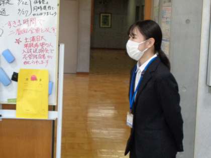 本日より週3日、10月20日まで、教育実習前研修として、大学2年生の卒業生が実習を行います。生徒と楽しい生活を送ってください。