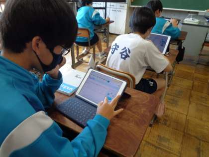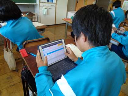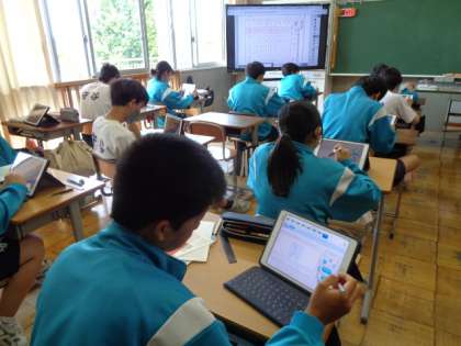 2年生の数学の授業。eライブラリーを使っての、既習事項の確認です。皆一生懸命取り組んでいました。