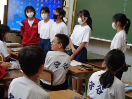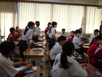 後期の学級委員決めをしていました。立候補者が抱負を級友に伝えていました。
