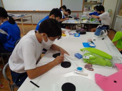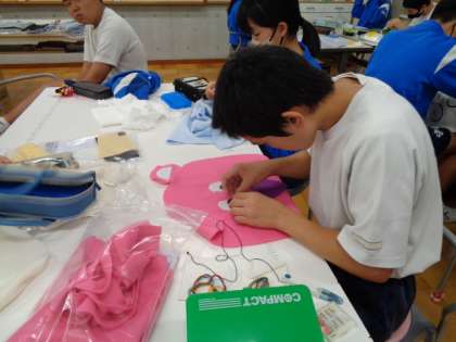 3年生の家庭科の授業は、クッションづくり。皆真剣に取り組んでいました。