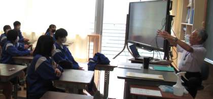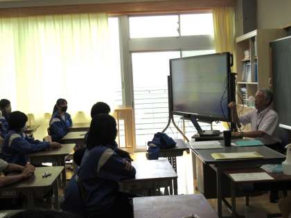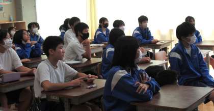 校長先生から「働くこと」についてお話していただきました。生徒は興味津々の表情で真剣に聞き入っていました。