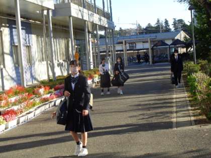 今日も生徒が元気に登校してきました。今日も頑張りましょう!