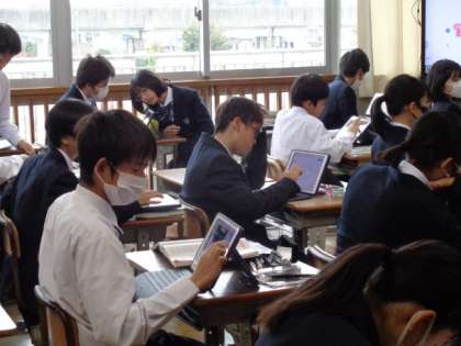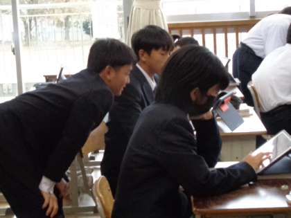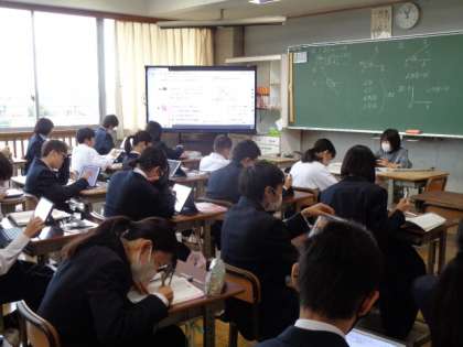 1年生の数学の授業は、図形。角について、タブレットを用いて確認していました。