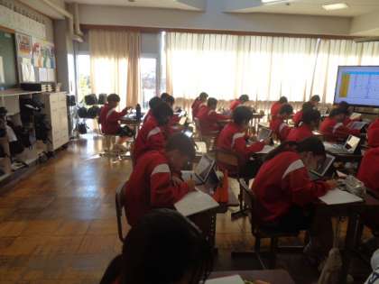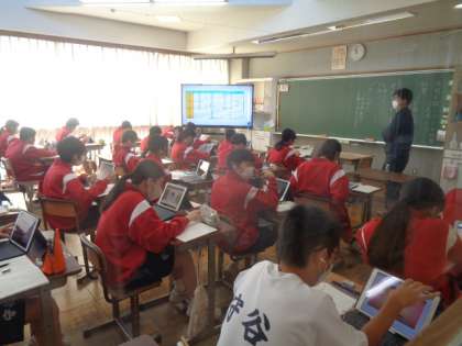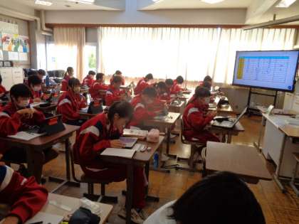 1年生の国語の授業は、古典。物語の流れをタブレットを用いて確認していました。