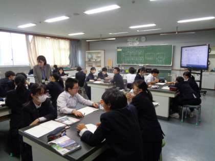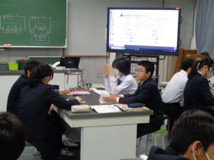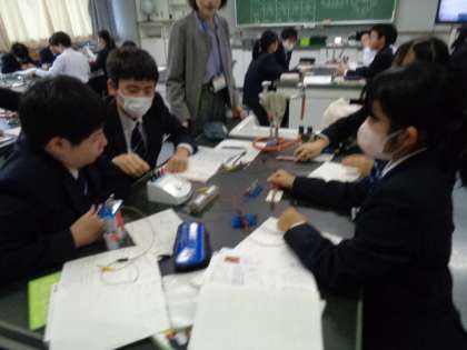 2年生の理科の授業は、電流。回路の違いによる電圧について、実験結果をまとめていました。