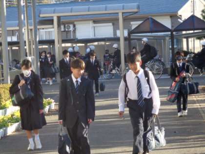 生徒が元気に登校してきました。今週も頑張りましょう!