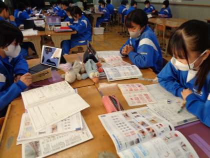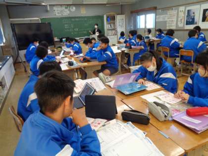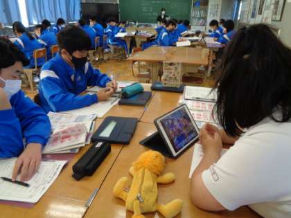 3年生の美術の授業は、篆刻。デザインのバランスについて確認していました。