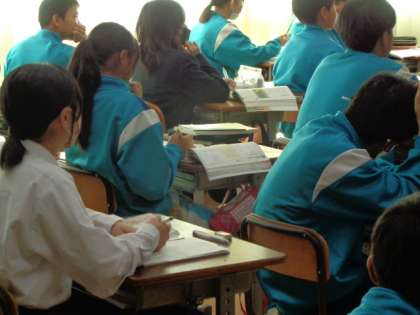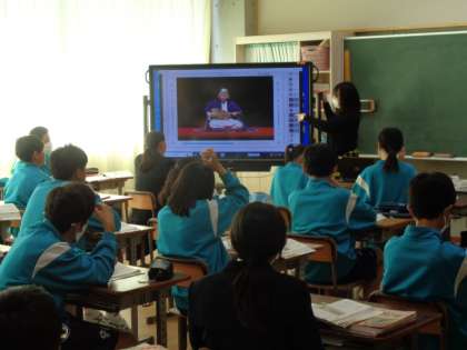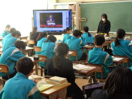 2年生の国語の授業は、平家物語。関連するビデオを視聴しながら進めていました。