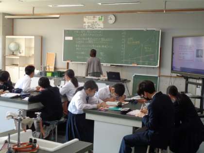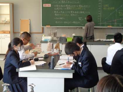 2年生の理科の授業は、オームの法則について。実験結果から、法則性を確認していました。