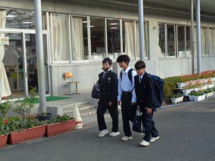 生徒が元気に登校してきました。今日も頑張りましょう!