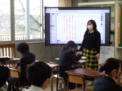 2年生の国語の授業は、説明文。先生の説明を真剣に聞いていました。