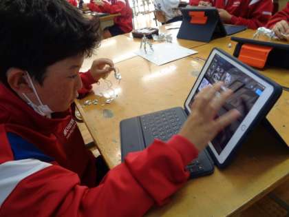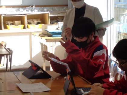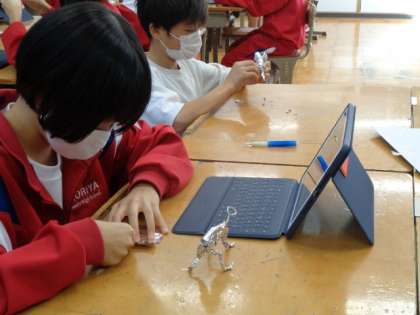 1年生の美術の授業は、造形。動物らしい曲線を目指し、黙々と作業をしていました。