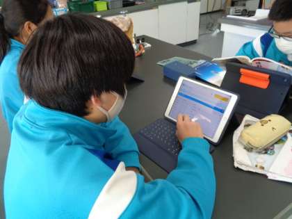 2年生の理科の授業は、既習事項の確認。eライブラリーを使って確認していました。