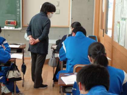 3年生の数学の授業は、円周角の定理を使った、三角形の相似の証明。皆真剣に取り組んでいました。