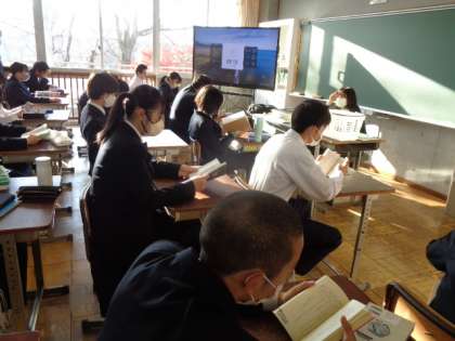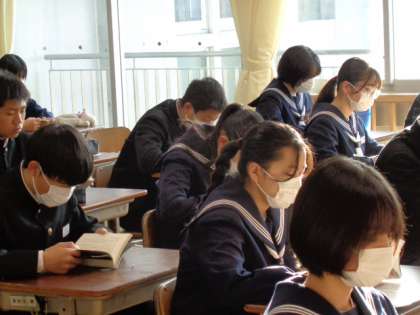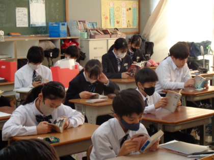 朝読書の時間。どのクラスも静かに読書を楽しんでいました。