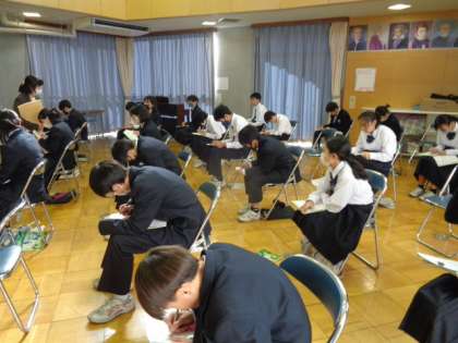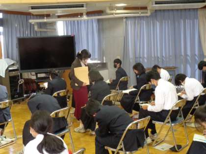 1年生の音楽の授業は、鑑賞。聴いた曲のイメージ等をまとめていました。