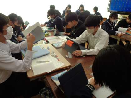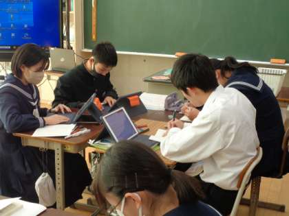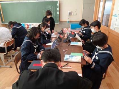 3年生の国語の授業は、座右の銘を考える活動。古典や論語を調べて、自分に合ったものを探していました。
