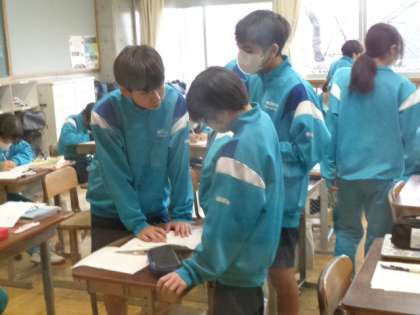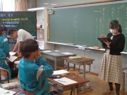 2年生の国語の授業は、漢文。プリントを用いて読み方を確認していました。