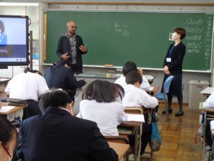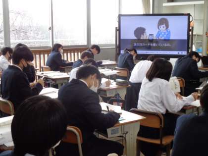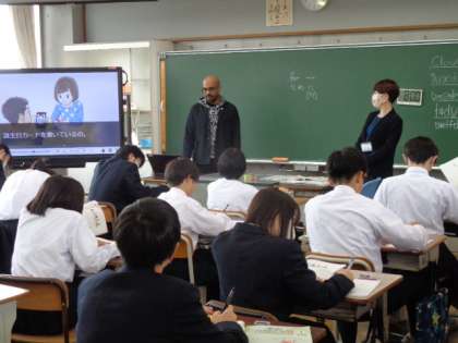 1年生の英語の授業。先生の会話を聞きながら、用語の使い方を確認していました。