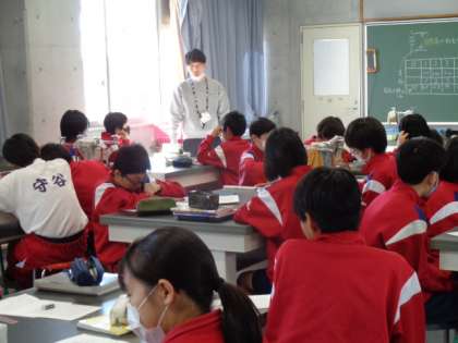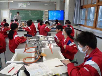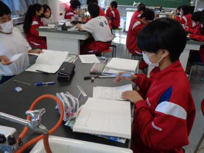 1年生の理科の授業は、力の単元。バネはかりの伸びに関するグラフを作成していました。