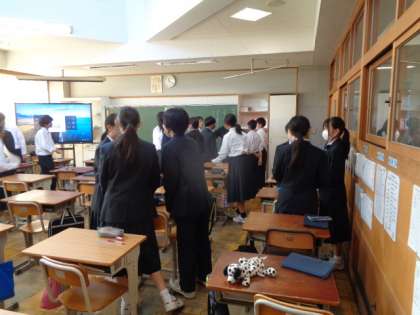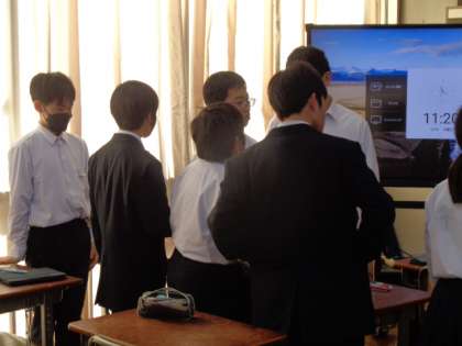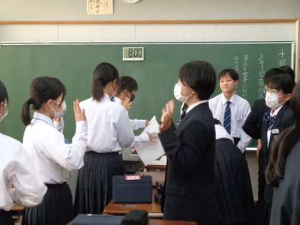 1年生の学活。スキー宿泊学習の部屋割りの相談をしていました。