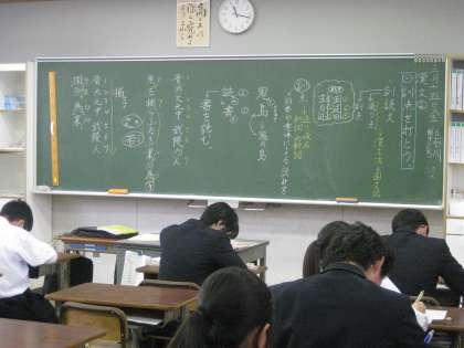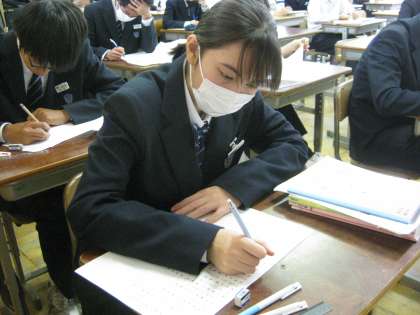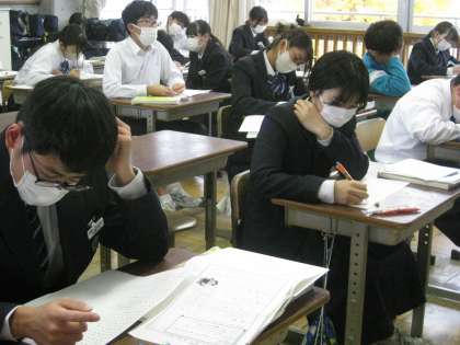 漢文の学習に取り組んでいる2年生。今日は訓読文について真剣に学んでいました。