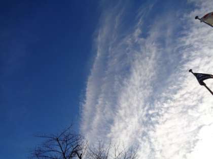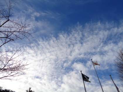 今朝、巻雲とうろこ雲の中間体のような雲が、綺麗に空を覆っていました。低く見えてた雲、実は高層にできる雲のようです。