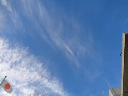 十種雲形によると、巻雲は高層にできる雲で、すじ雲とも言われます。また、うろこ雲は、巻積雲で、やはり高層にできる雲です。この雲の中間体に見えた雲、巻雲はお天気が崩れる予兆とされているため、やはりお天気が崩れるのかを調べてみると、明日は曇り予報となっていました。