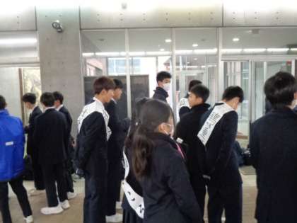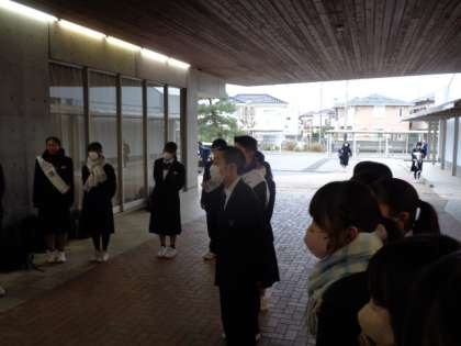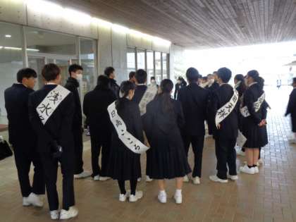 朝、昇降口付近のコンコースで、立候補者の選挙活動がありました。皆真剣に活動していました。
