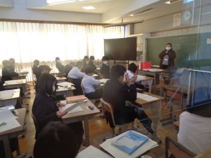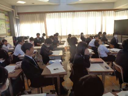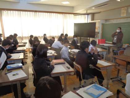 1年生の国語の授業。学力診断のためのテストに向けて、テスト形式で既習事項を確認していました。