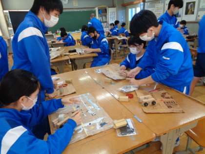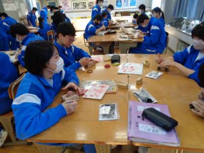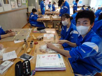 3年生の美術の授業は、篆刻。皆集中して取り組んでいました。