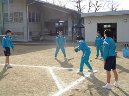 2年生の保健体育の授業は、ベースボール型競技。男女混合で試合を楽しんでいました。