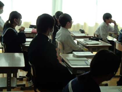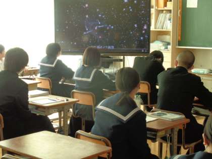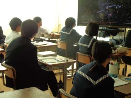 3年生の理科の授業は宇宙について。ビデオ視聴をしてまとめをしていました。