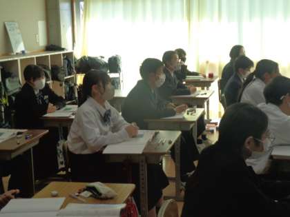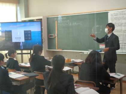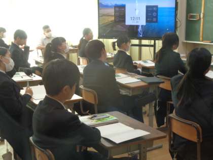 2年生の数学の授業は、図形。平行四辺形の定義(2組の向かい合う辺が、それぞれ平行な四角形)について、確認していました。